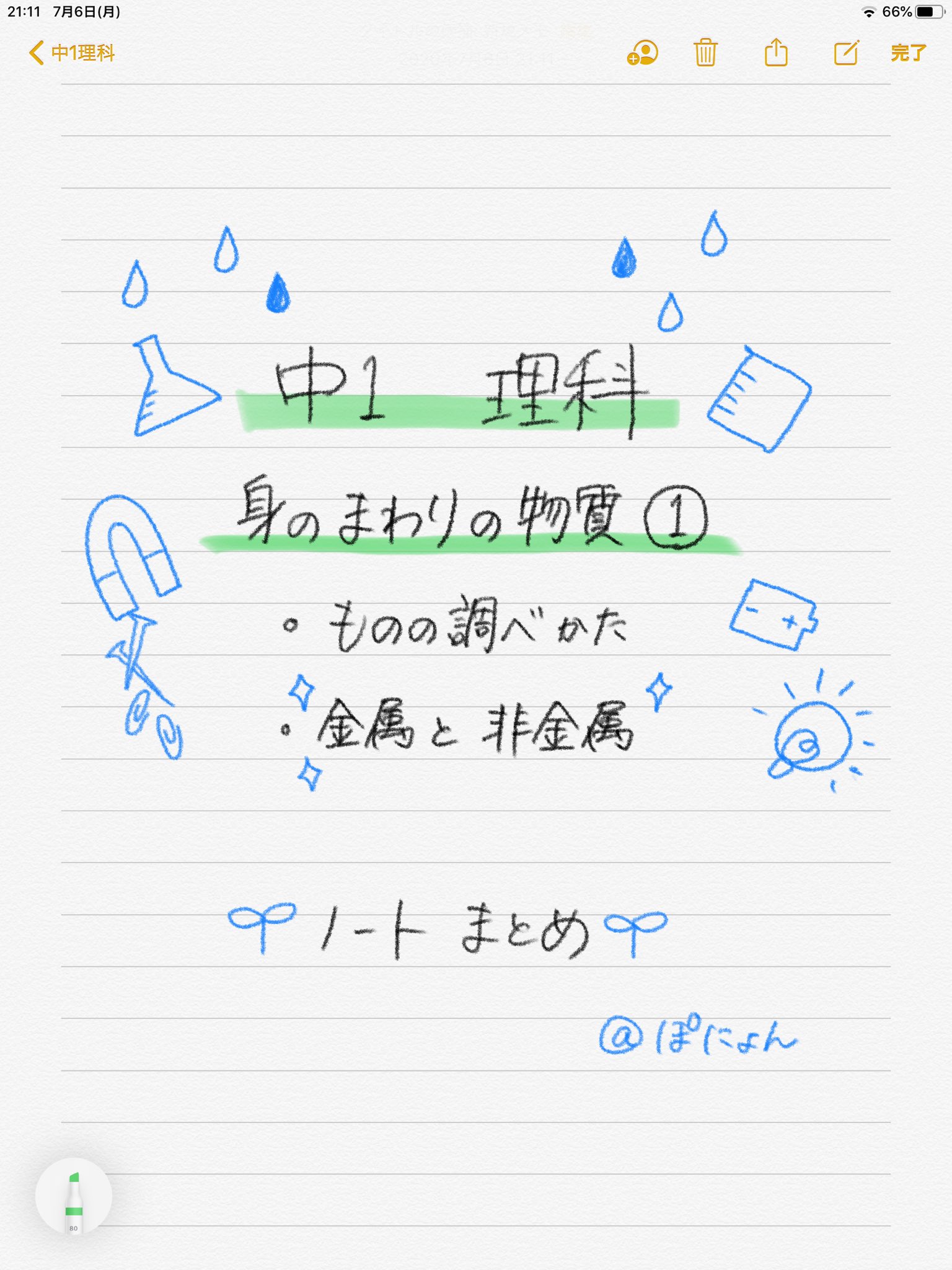 中1理科ノートまとめー身のまわりの物質ー金属と非金属 ぽにょんちゃん Note